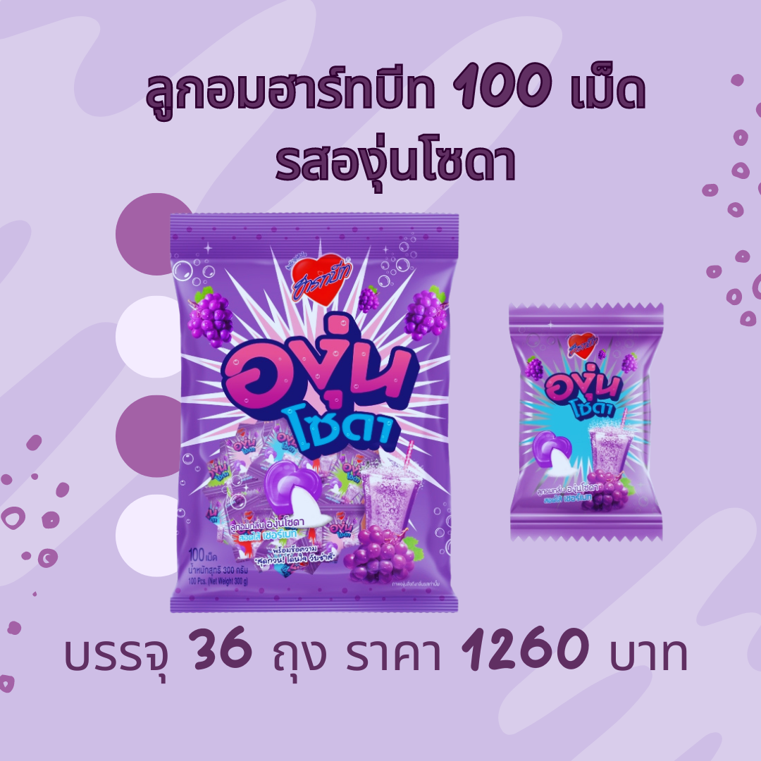 ลูกอมฮาร์ทบีท 100 เม็ด รสองุ่นโซดา