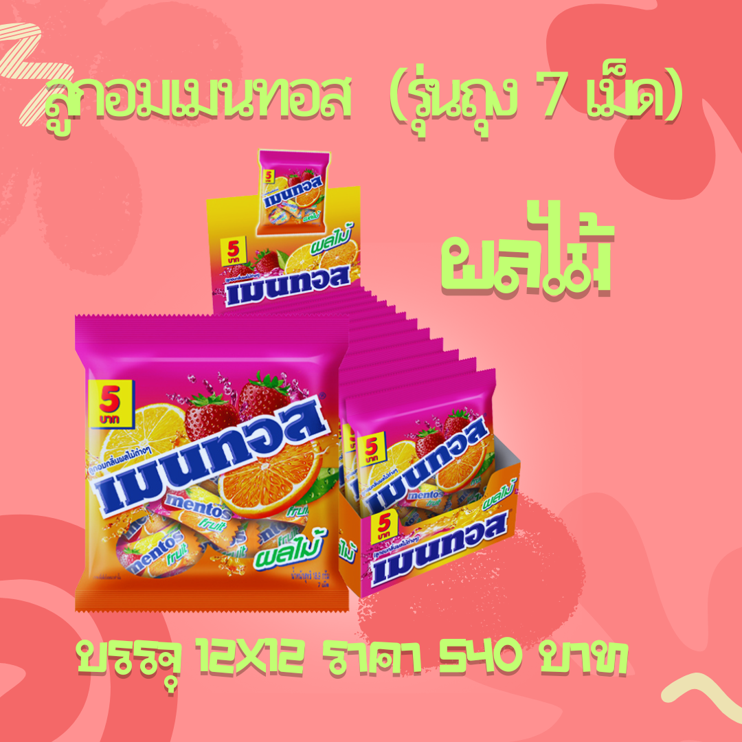 ลูกอมเมนทอส (รุ่นถุง 7เม็ด)ผลไม้รวม