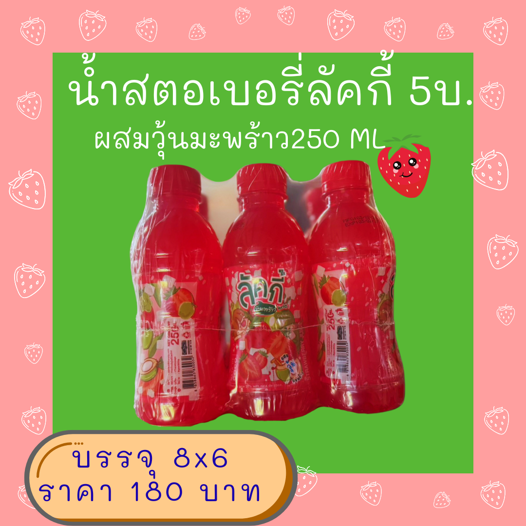 น้ำสตอเบอรี่ลัคกี้ 5บ. ผสมวุ้นมะพร้าว250 ml