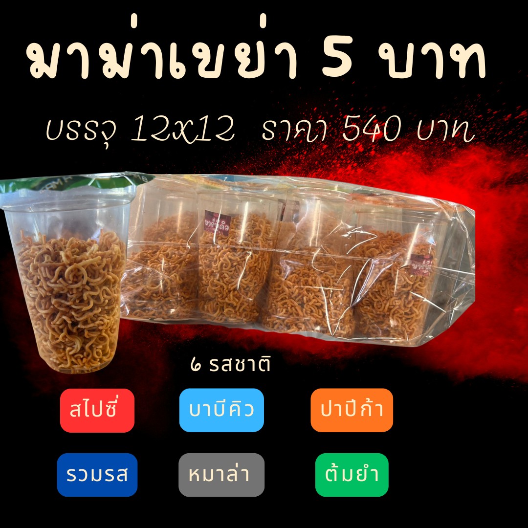 มาม่าเขย่า5บ.สไปซี่/รวมรส/บาบีคิว/หมาล่า/ปาปีก้า/ต้มยำ