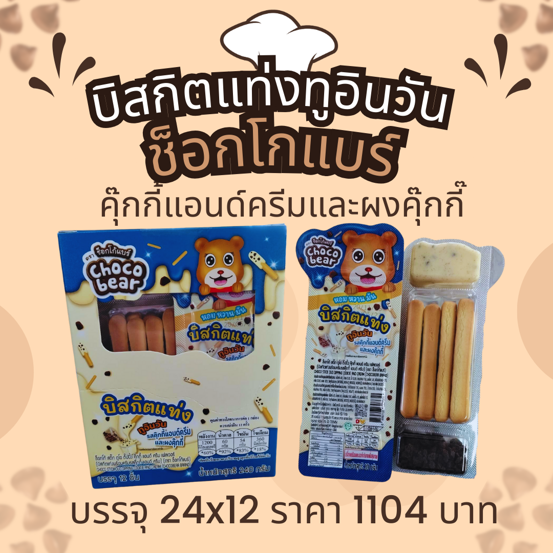 บิสกิตแท่งทูอินวัน ช็อกโกแบร์ คุ๊กกี้แอนด์ครีมและผงคุ๊กกี๊